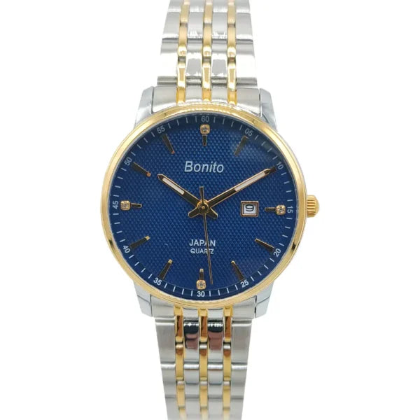 Bonito Q-1027-TTGLD-BLU Metal Band Women Watch