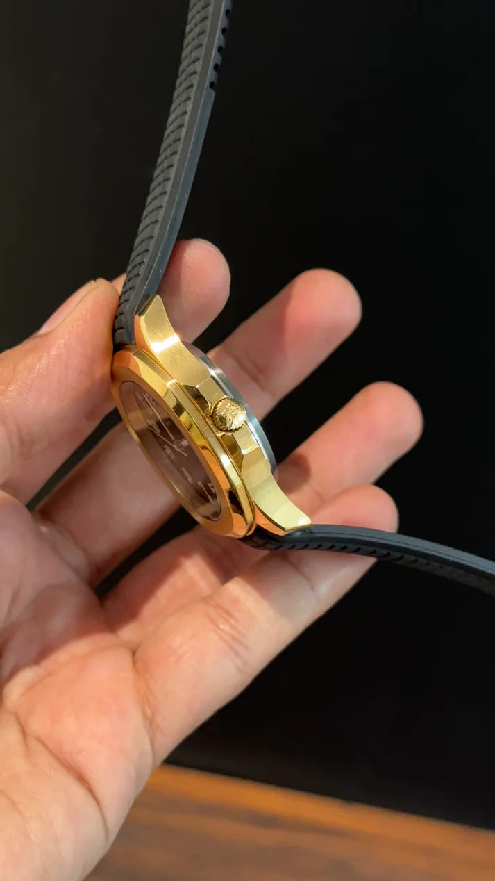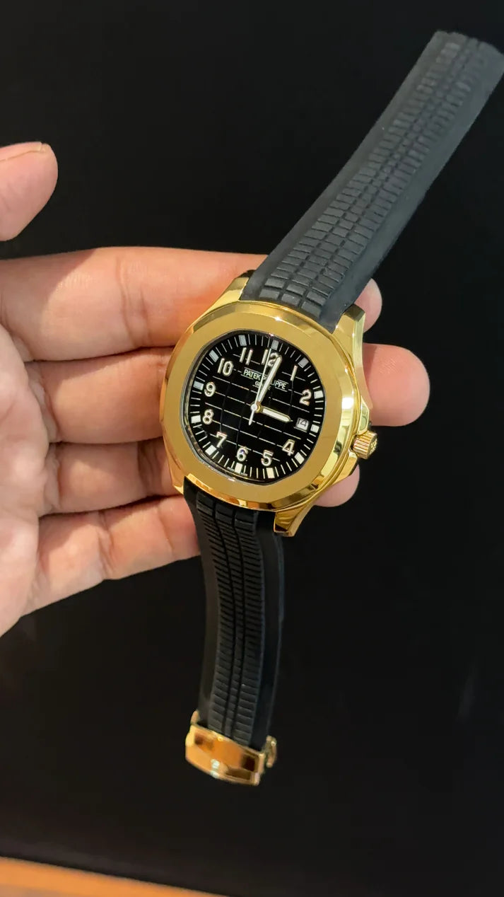 Pp Aquanaut | Auto | Gold | Black strap | Black Dial
